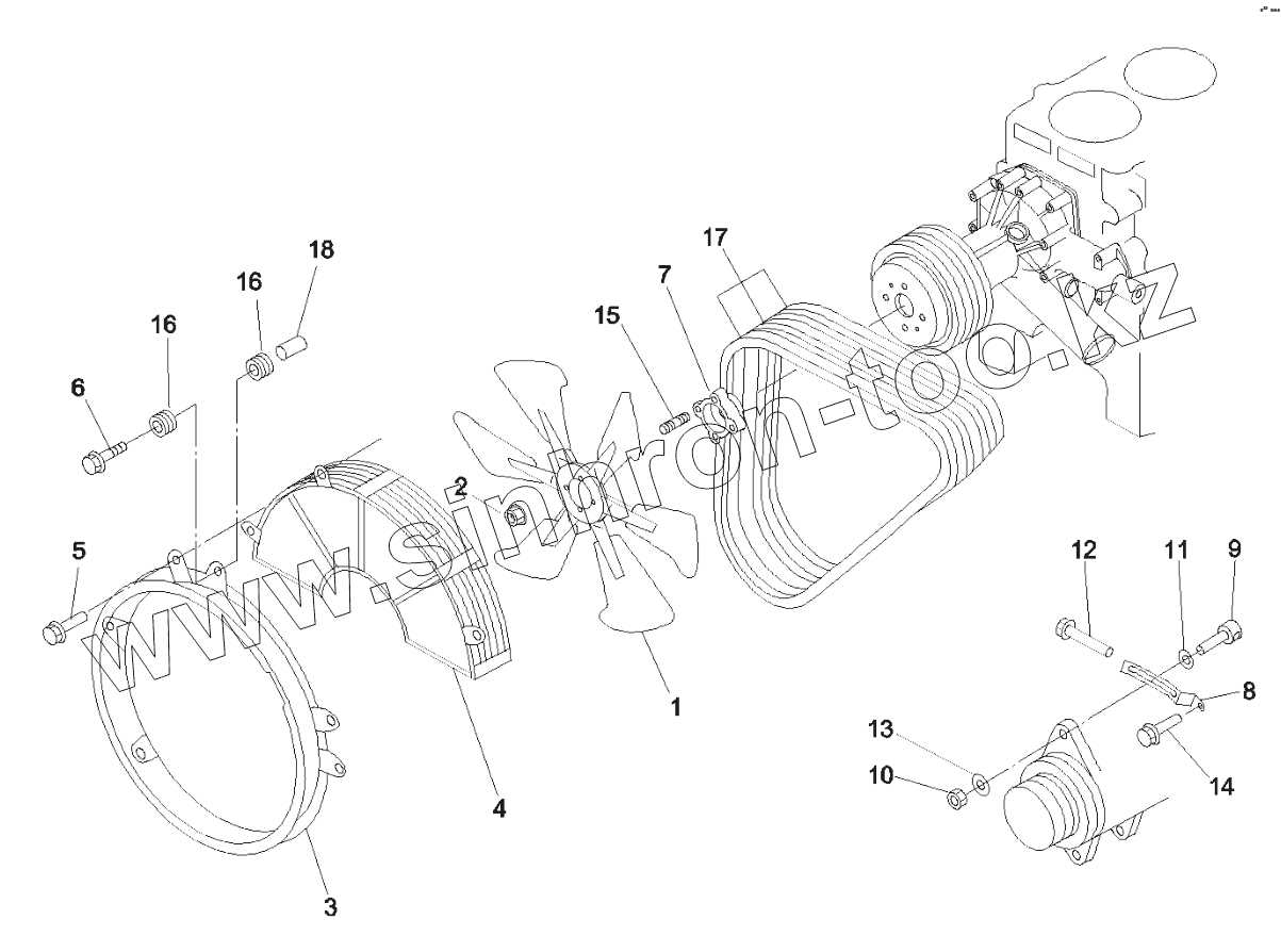 Каталог запасных частей к технике: SANY SY335C8. 60046522 Fan & Belt, Fan