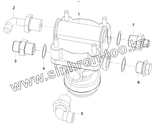 Каталог запасных частей к технике: SANY SY5250GJB6C. 10138265 Valve, differential, axle, rear, with adaptor