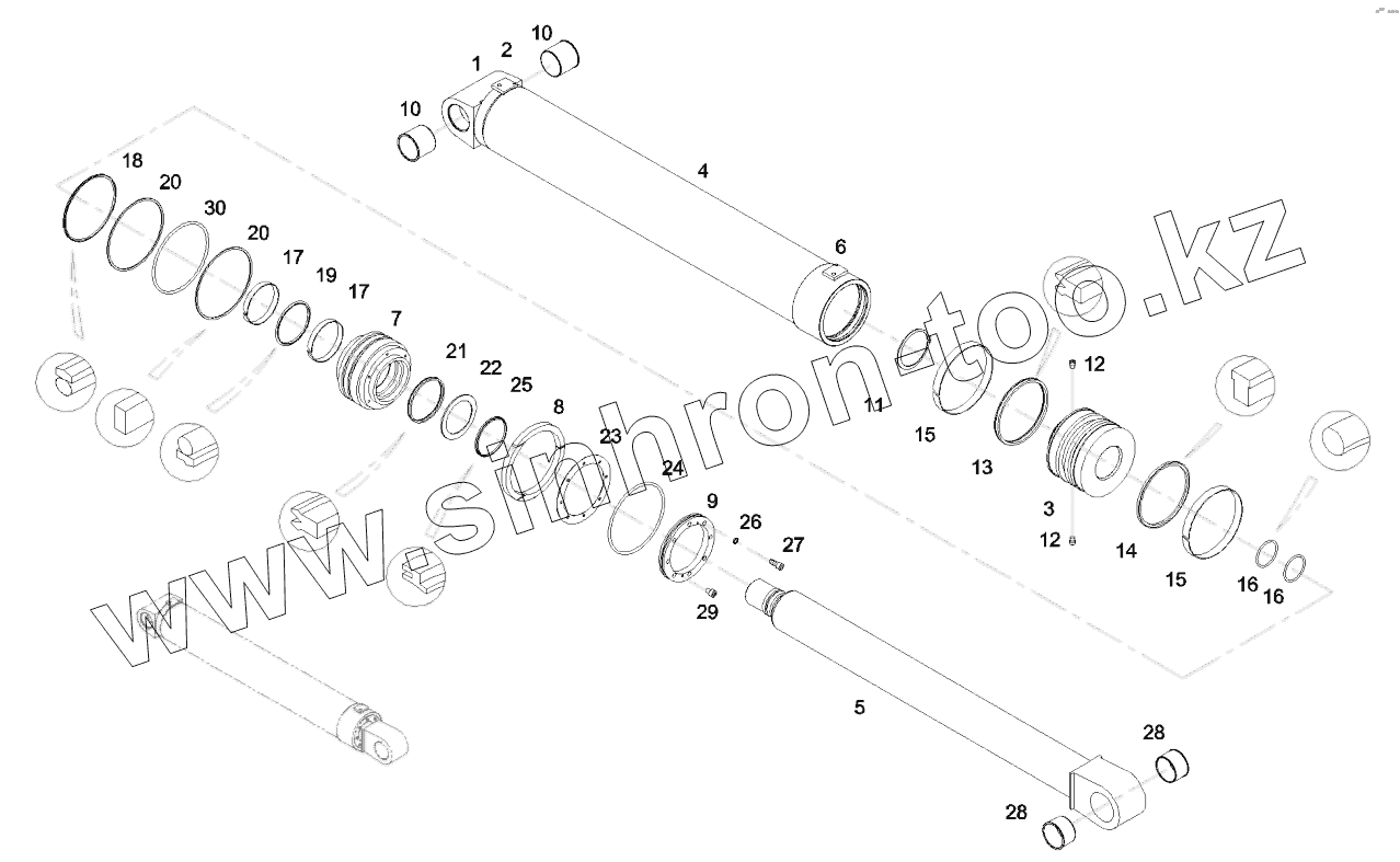 Каталог запасных частей к технике: SANY SY5320THB 470C-8S. 12554352 Hydraulic cylinder, в„–4