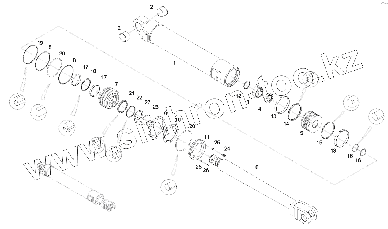 Каталог запасных частей к технике: SANY SY5320THB 470C-8S. 12554354 Hydraulic cylinder, в„–5