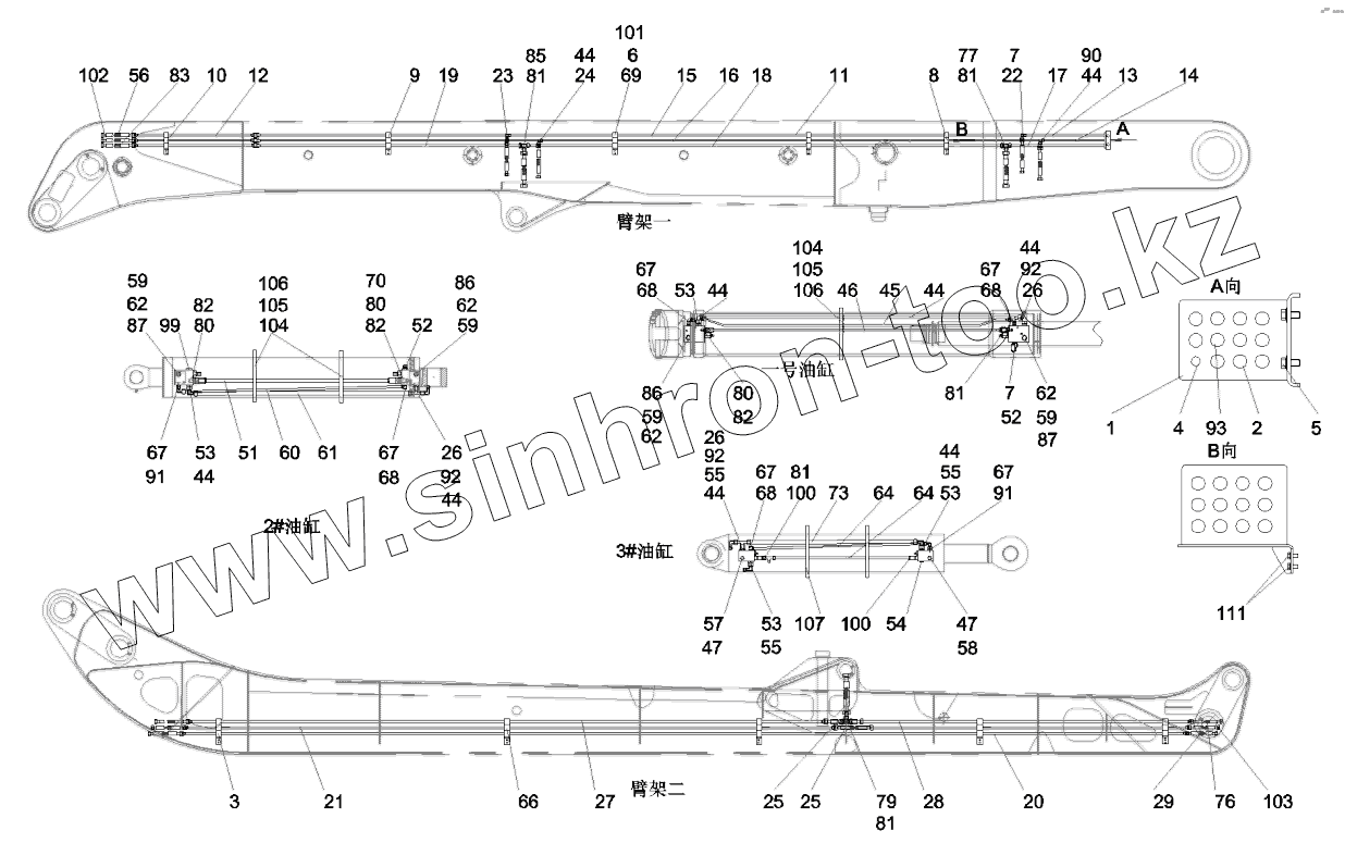 Каталог запасных частей к технике: SANY SY5320THB 470C-8S. 12563916 Hydraulic system, boom