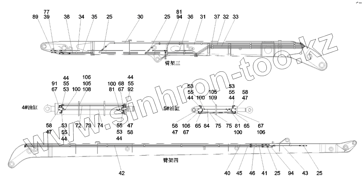 Каталог запасных частей к технике: SANY SY5320THB 470C-8S. 12563916 Hydraulic system, boom