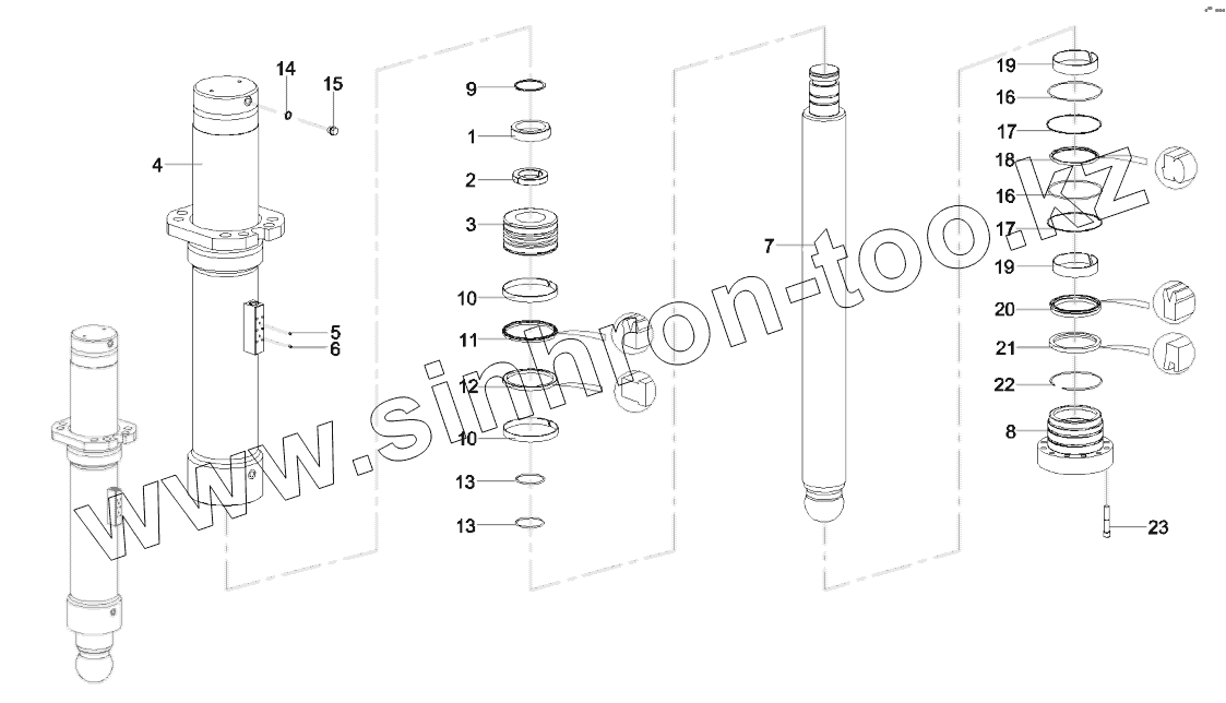 Каталог запасных частей к технике: SANY SY5320THB 470C-8S. 12634395 Oil cylinder , outrigger, rear
