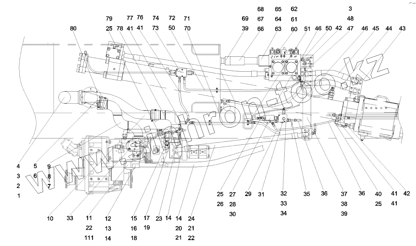 Каталог запасных частей к технике: SANY SY5320THB 470C-8S. 12827887 Pipeline, hydraulic, main system