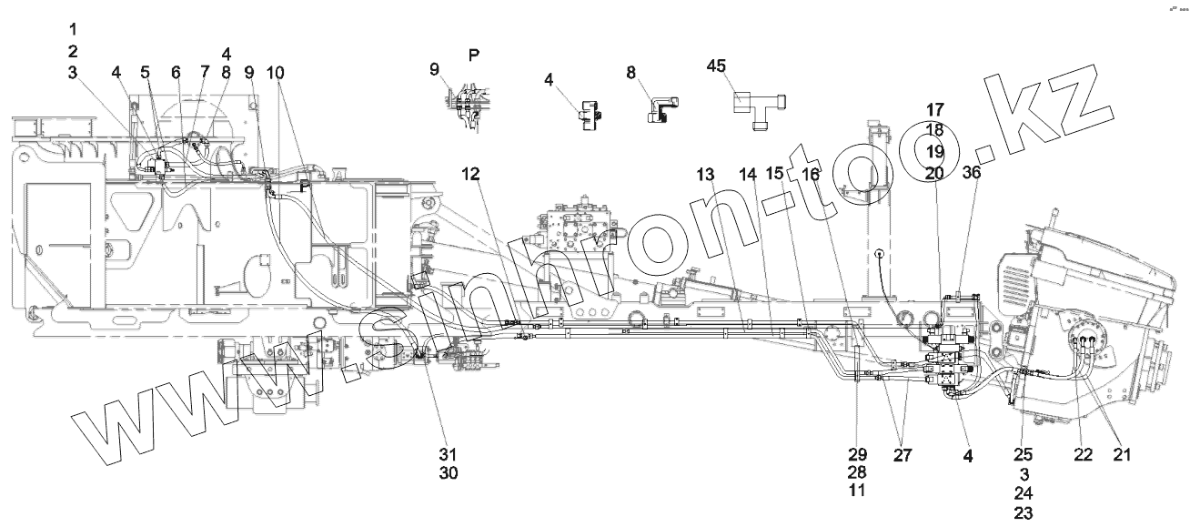 Каталог запасных частей к технике: SANY SY5320THB 470C-8S. 12828050 Hydraulic system, mixing