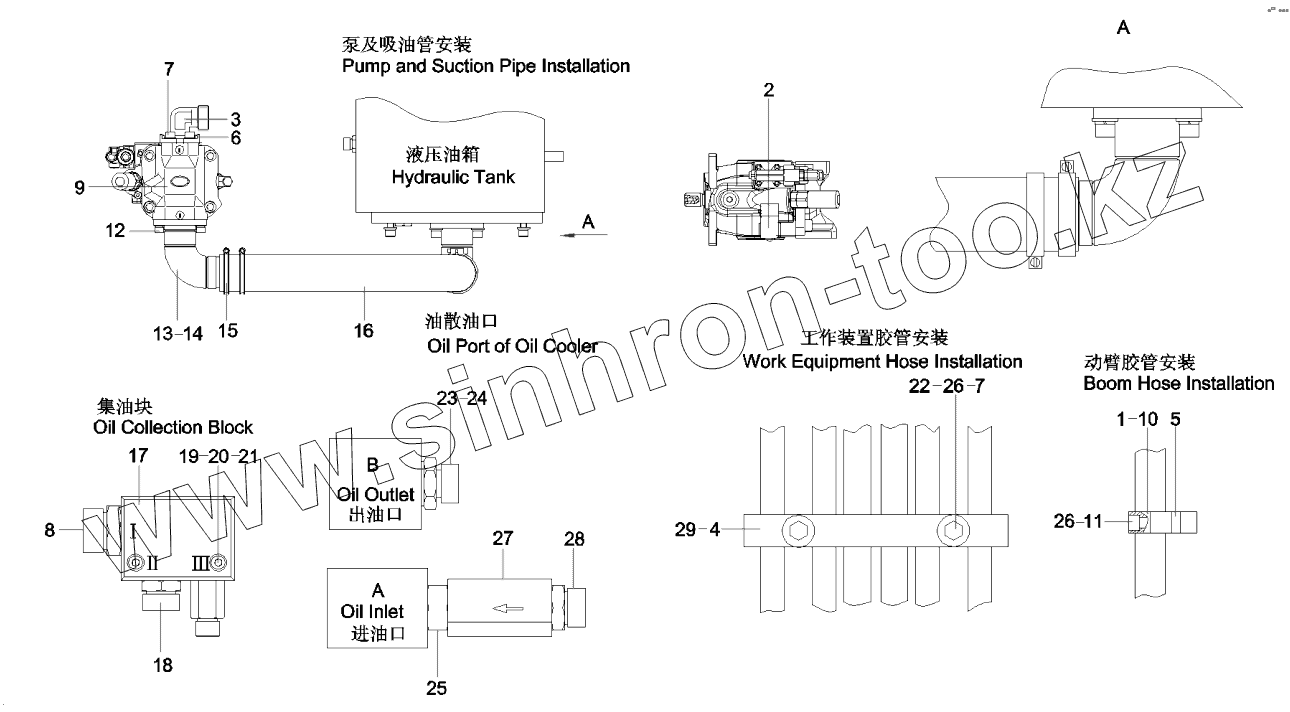 Каталог запасных частей к технике: SANY SY55C9. 12112468 Pipeline, main, hydraulic