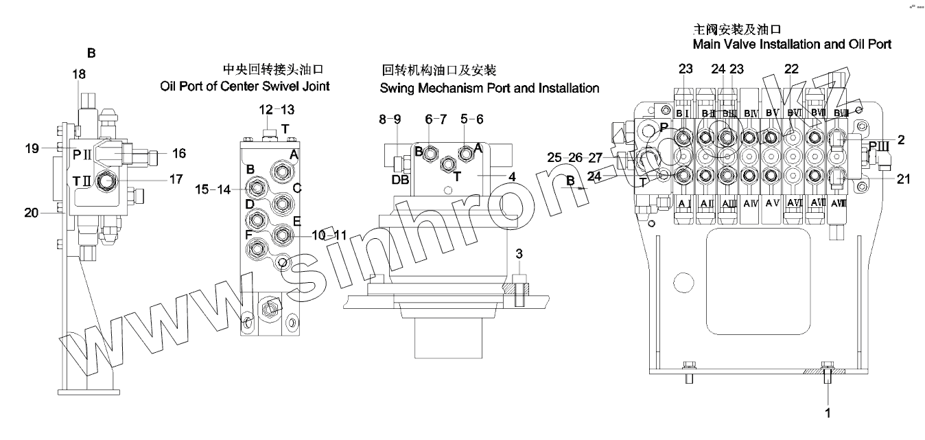 Каталог запасных частей к технике: SANY SY55C9. 12112468 Pipeline, main, hydraulic