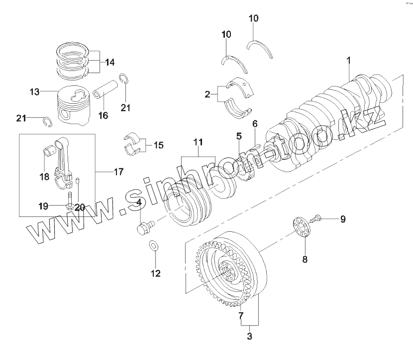 Каталог запасных частей к технике: SANY SY55C9. 60029667 Crankshaft & piston & flywheel