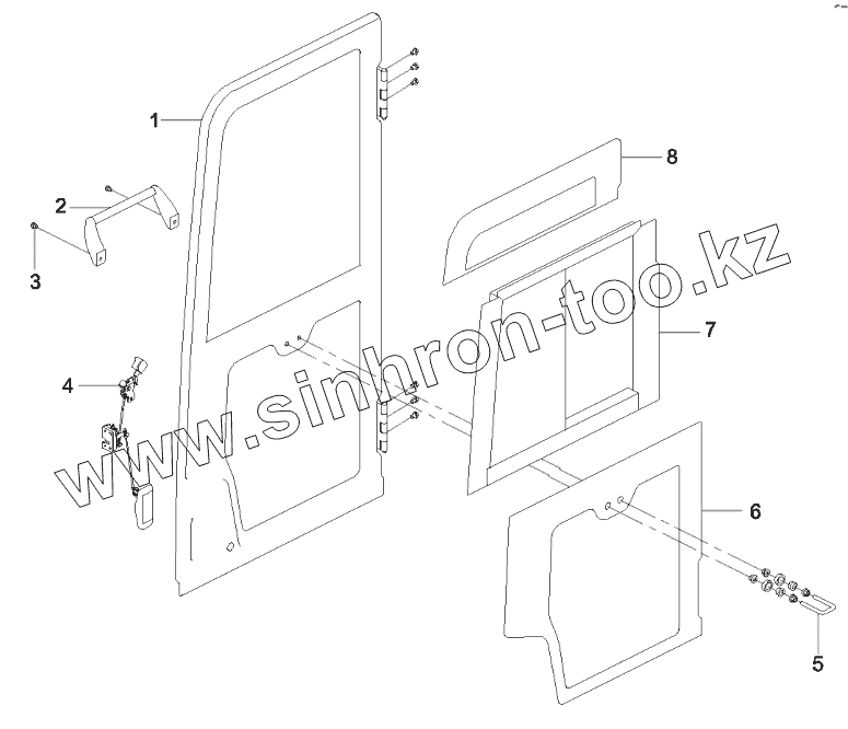 Каталог запасных частей к технике: SANY SY55C9. 60080856 Door AS, cab
