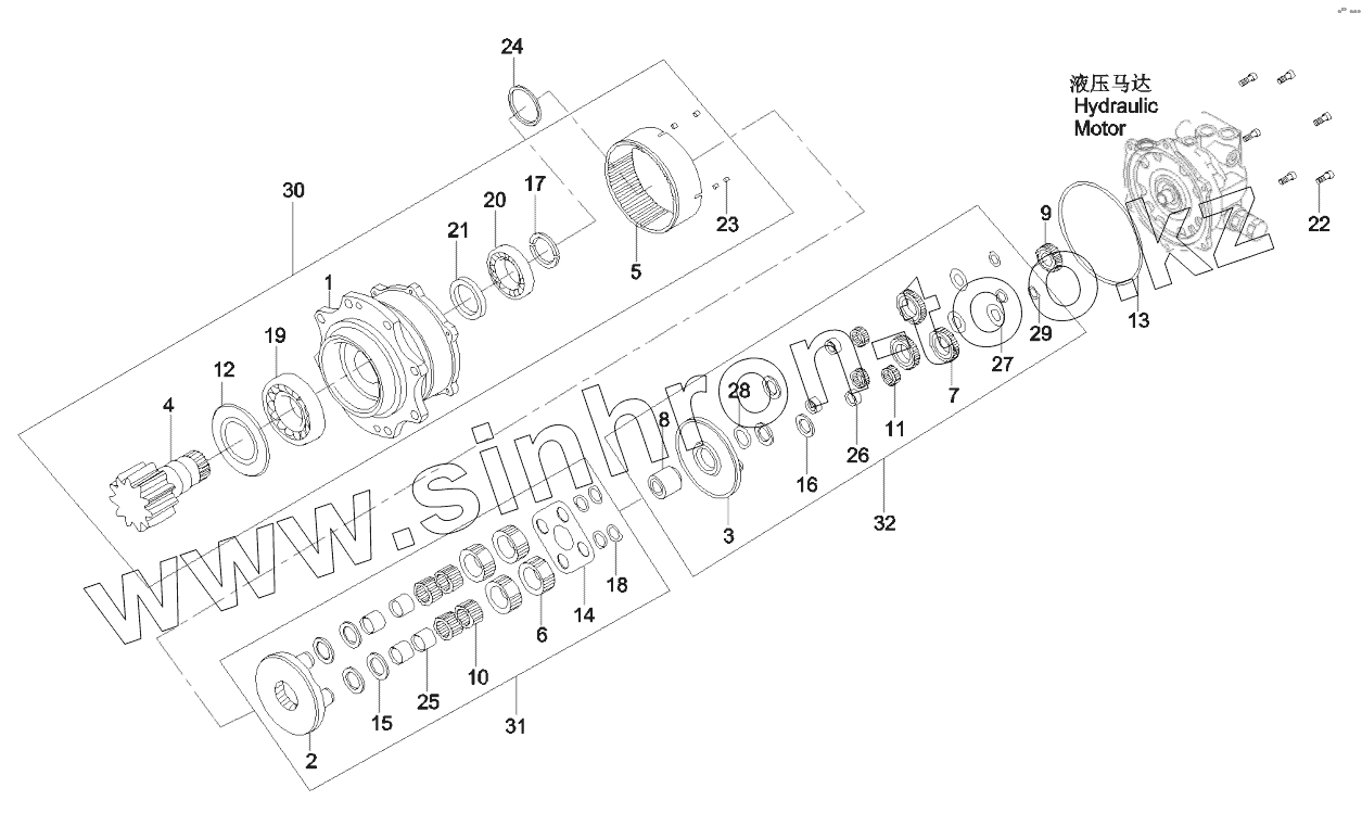 Каталог запасных частей к технике: SANY SY55C9. 60255065 REDUCTION GEAR ASSEMBLY