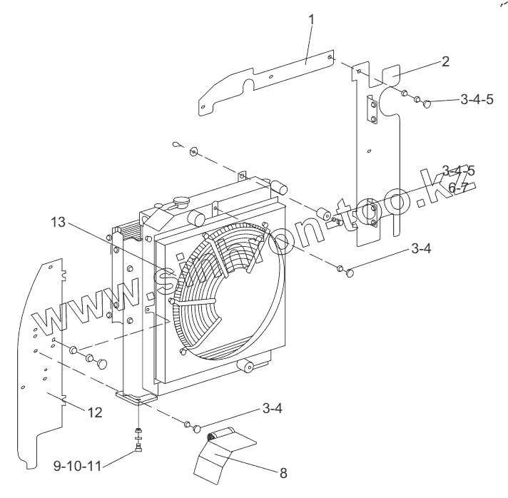 Каталог запасных частей к технике: SANY SY65C. Radiator installation