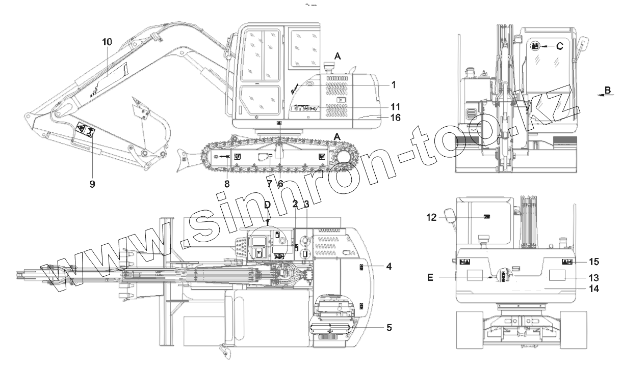 Каталог запасных частей к технике: SANY SY75C9I2H. 10878001 Painting, excavator