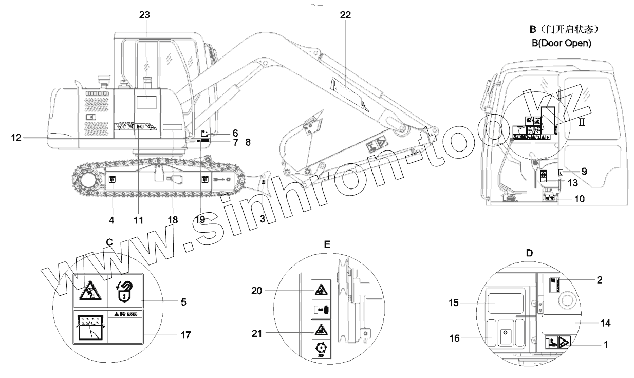 Каталог запасных частей к технике: SANY SY75C9I2H. 10878001 Painting, excavator