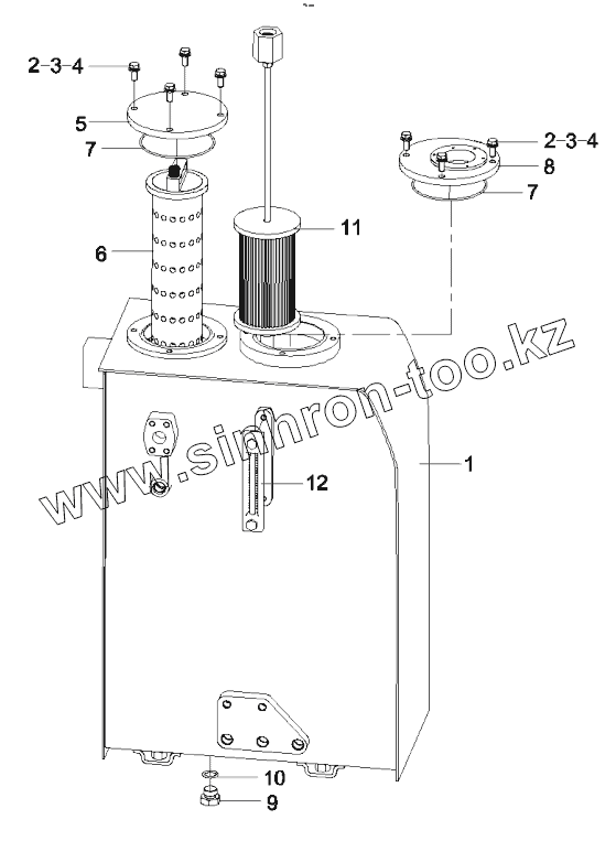 Каталог запасных частей к технике: SANY SY75C9I2H. 12158635 Tank GP, hydraulic