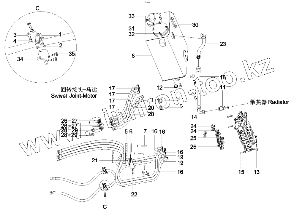 Каталог запасных частей к технике: SANY SY75C9I2H. 12158687 Pipeline, main, hydraulic