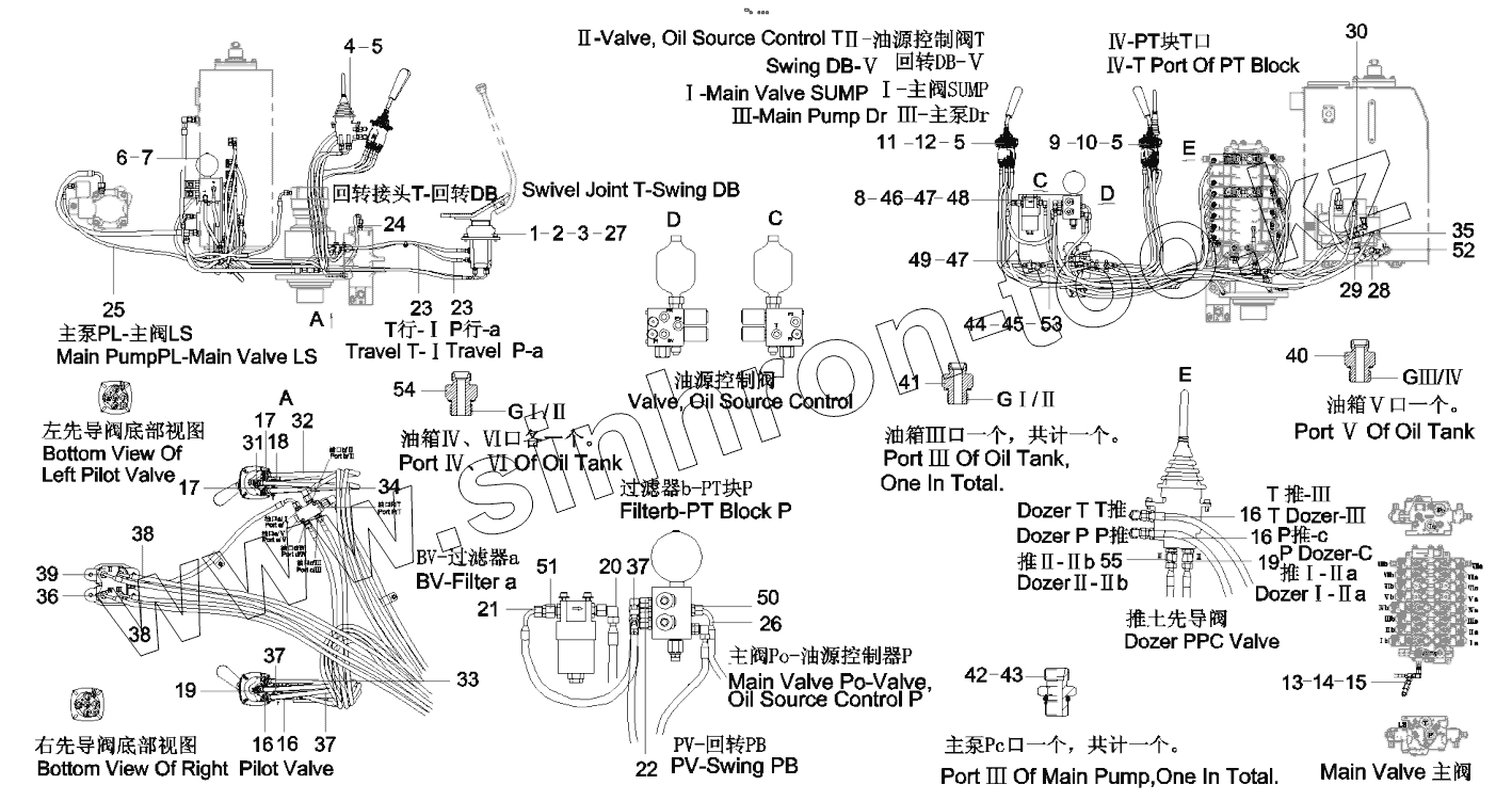 Каталог запасных частей к технике: SANY SY75C9I2H. 12158796 Pipeline, pilot, hydraulic