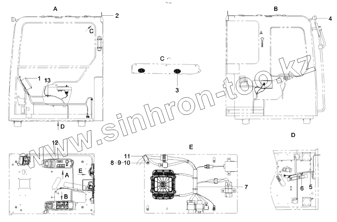 Каталог запасных частей к технике: SANY SY75C9I2H. 12390225 Cab electrical assembly SY75C9.5C.1