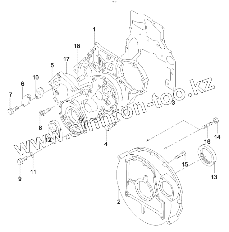 Каталог запасных частей к технике: SANY SY75C9I2H. 60029671 Timing gearbox and flywheel housing