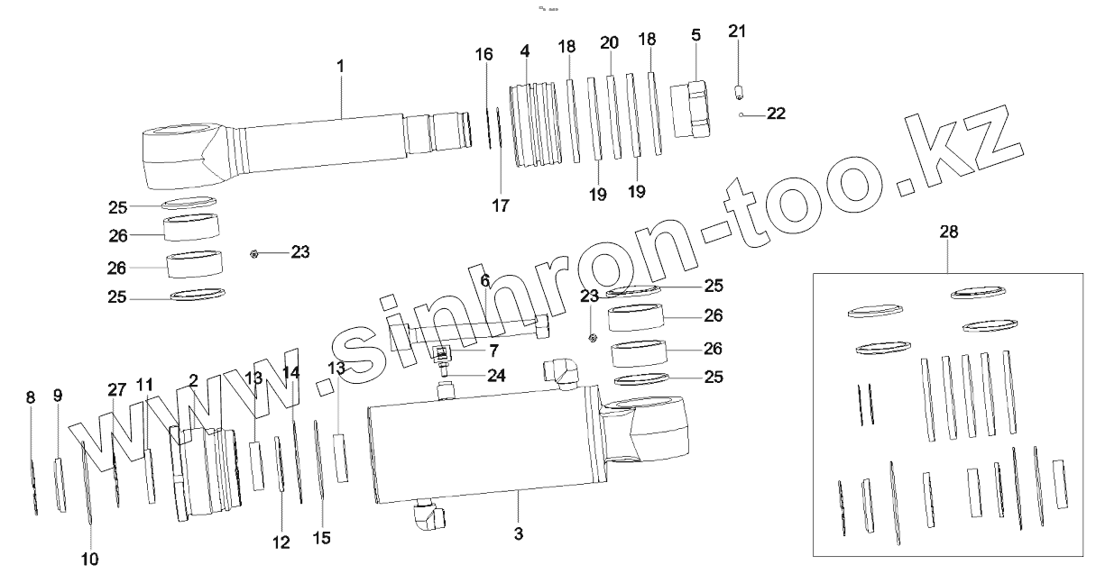 Каталог запасных частей к технике: SANY SY75C9I2H. 60199327 Cylinder, dozer blade 6T