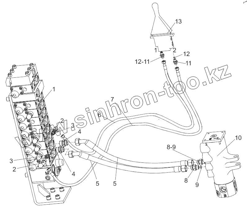 Каталог запасных частей к технике: SANY SY75C. Bulldozer hydraulic pipeline