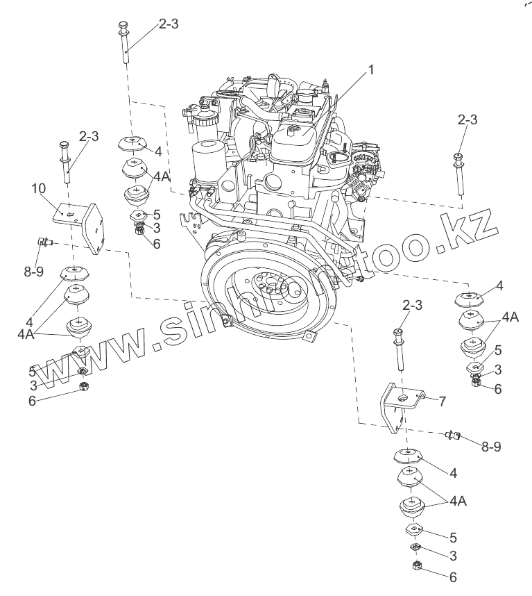 Каталог запасных частей к технике: SANY SY75C. Engine installation