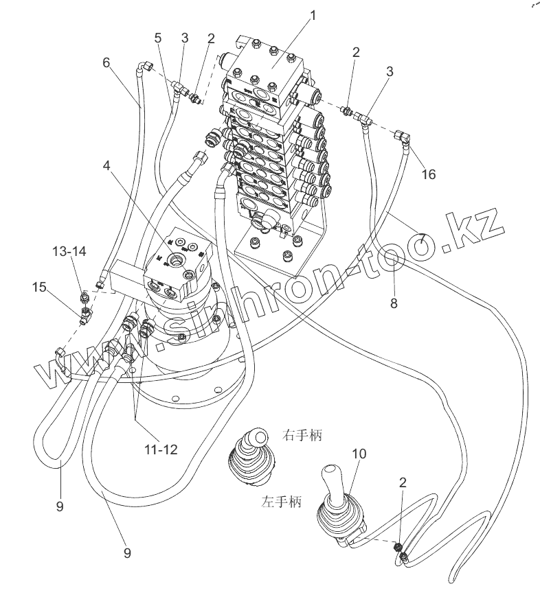 Каталог запасных частей к технике: SANY SY75C. Hydraulic line of rotary motor