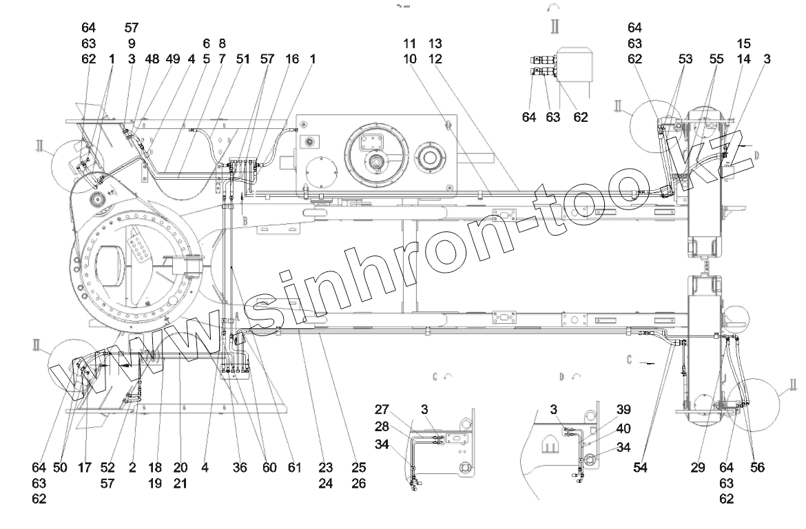 Каталог запасных частей к технике: SANY SYM5190THBDZ 30. 13226267 Hydraulic system, outrigger