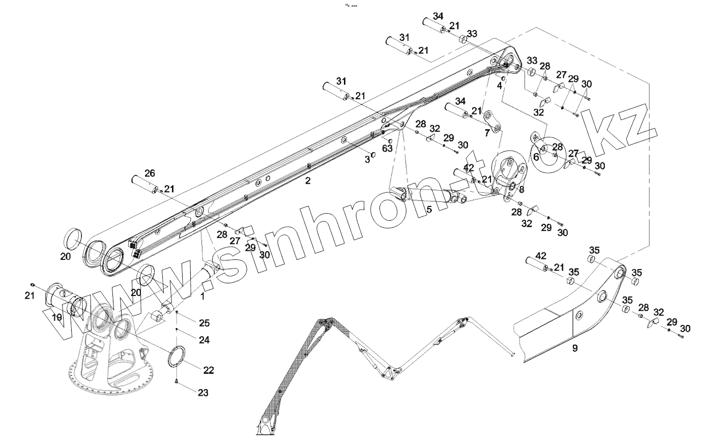 Каталог запасных частей к технике: SANY SYM5190THBDZ 30. 13233665 Boom GP