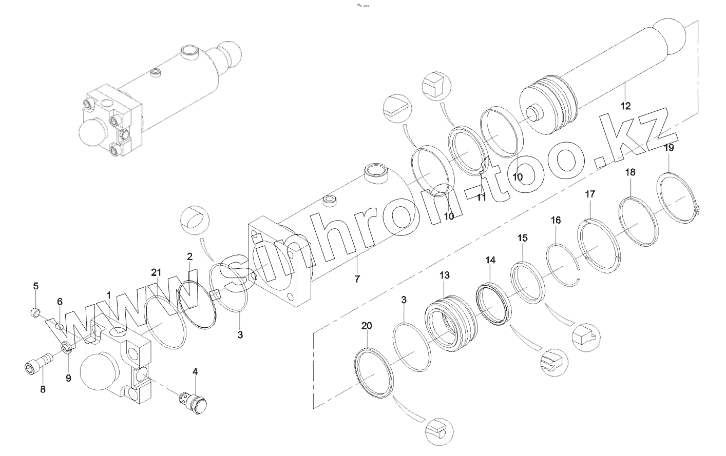 Каталог запасных частей к технике: SANY SYM5190THBDZ 30. A810301060032 Cylinder, swing valve, left