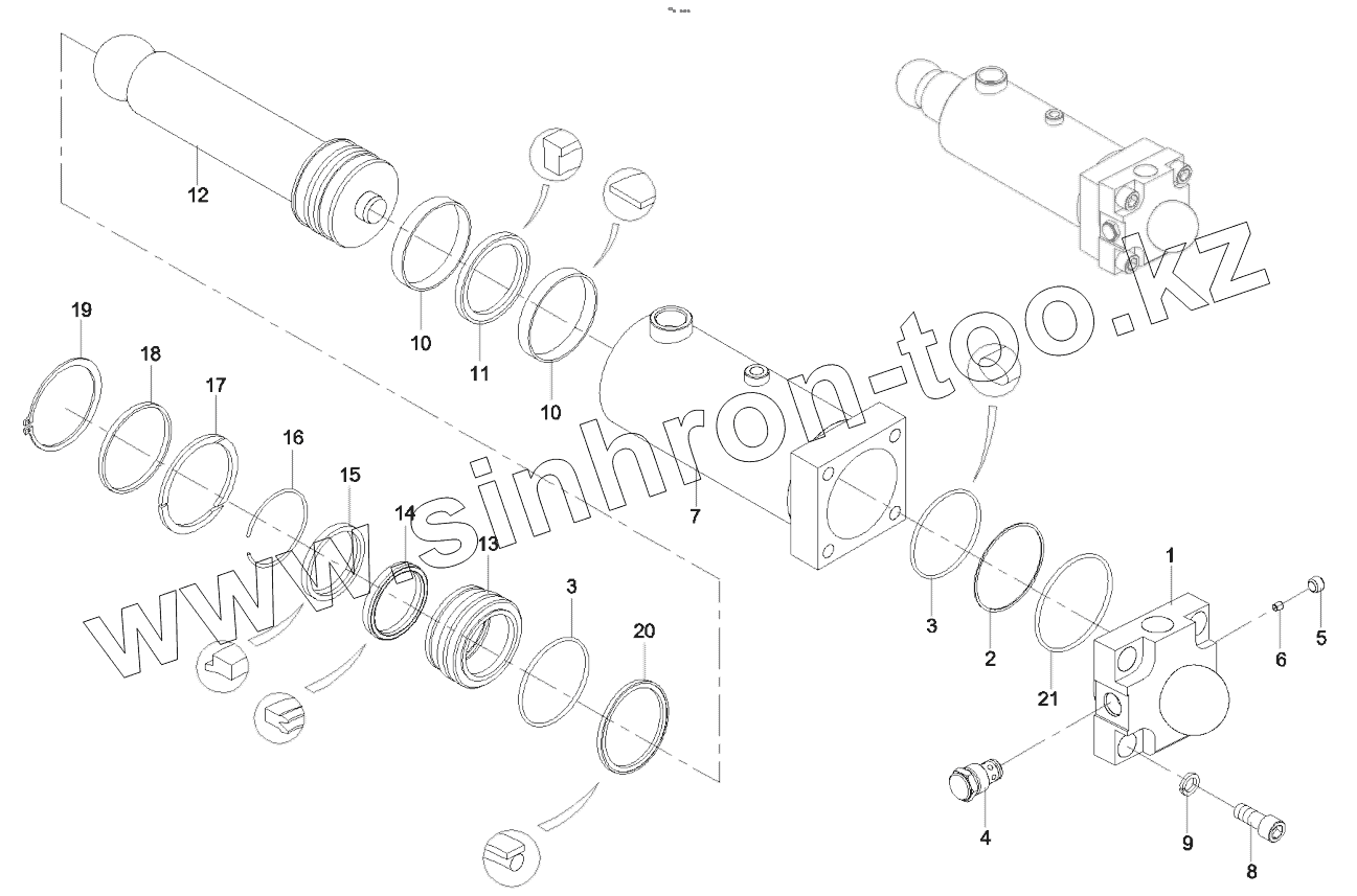 Каталог запасных частей к технике: SANY SYM5190THBDZ 30. A810301060033 Cylinder, swing valve, right
