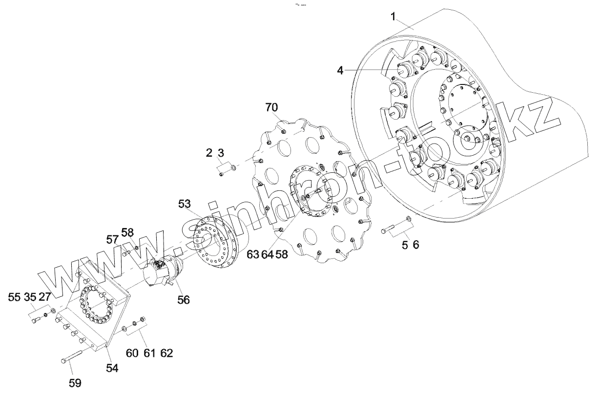 Каталог запасных частей к технике: SANY YZ20C. 10425189 Vibration Wheel Assembly