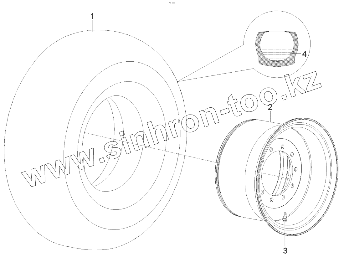 Каталог запасных частей к технике: SANY YZ20C. 10896423 Tire and wheel rim assembly