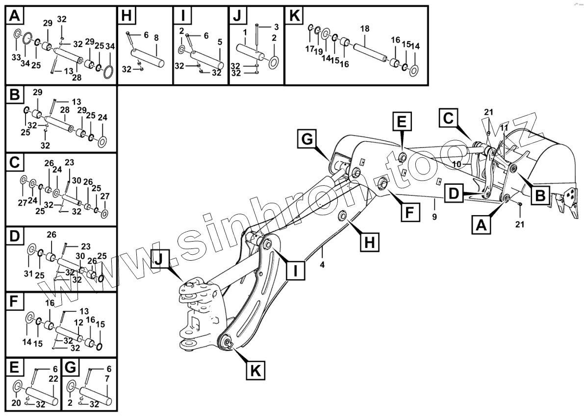Каталог запасных частей к технике: SDLG B877. Excavating working equipment