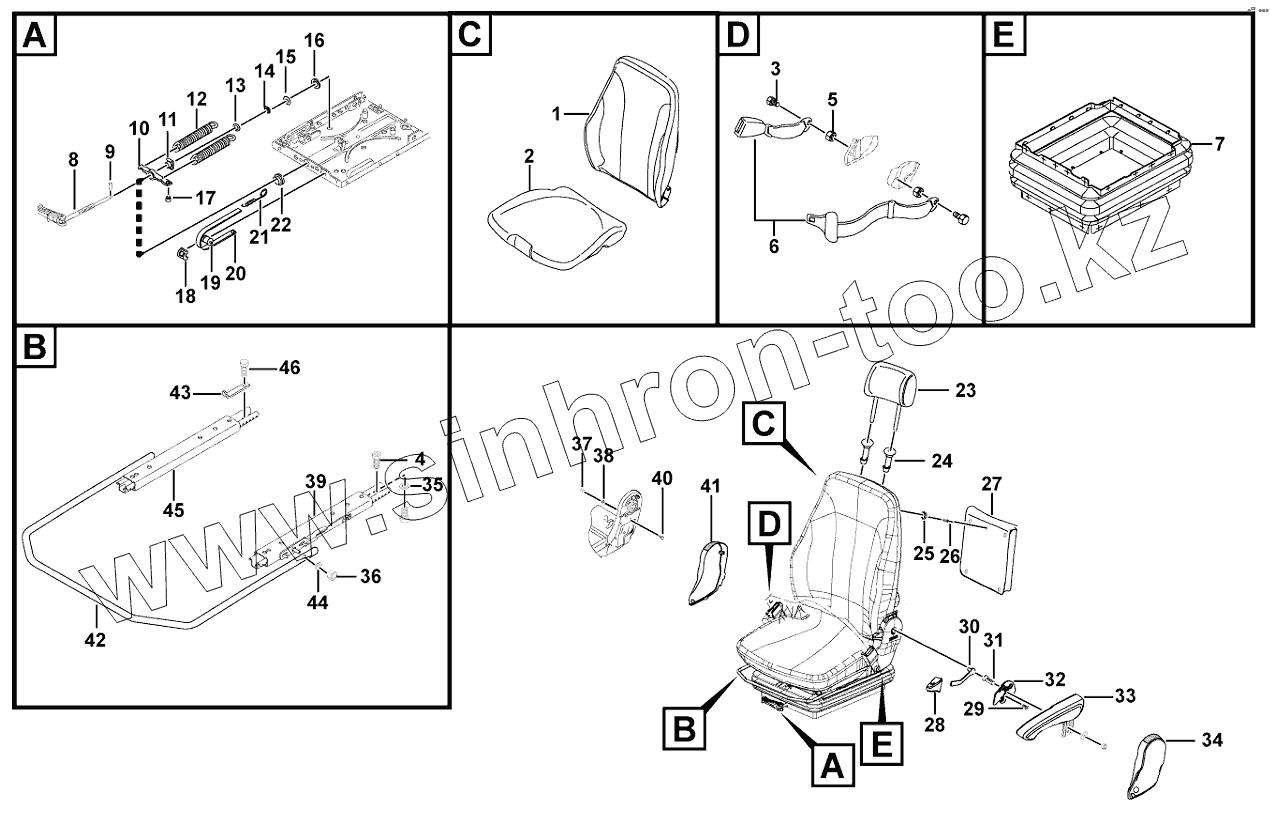 Каталог запасных частей к технике: SDLG L948. Driver seat LG06A (350201)