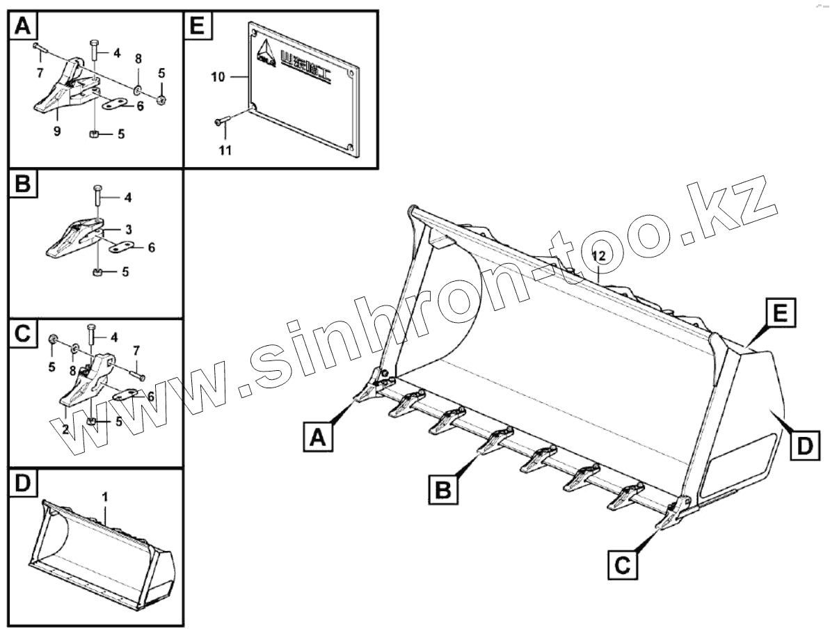 Каталог запасных частей к технике: SDLG L953N. Bucket