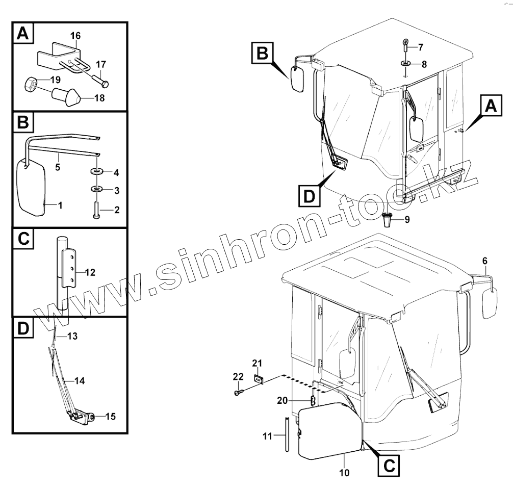 Каталог запасных частей к технике: SDLG L956F. Cab assembly