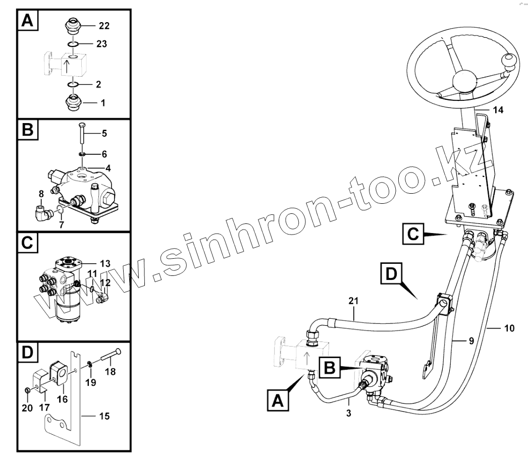 Каталог запасных частей к технике: SDLG L956F. Steering gear system