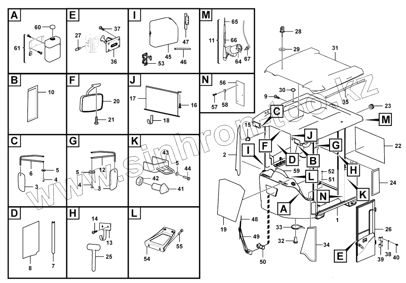 Каталог запасных частей к технике: SDLG L958F. Cab