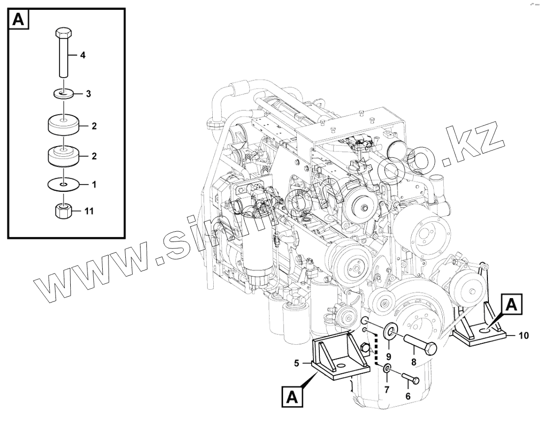 Каталог запасных частей к технике: SDLG L958F. Engine mounting