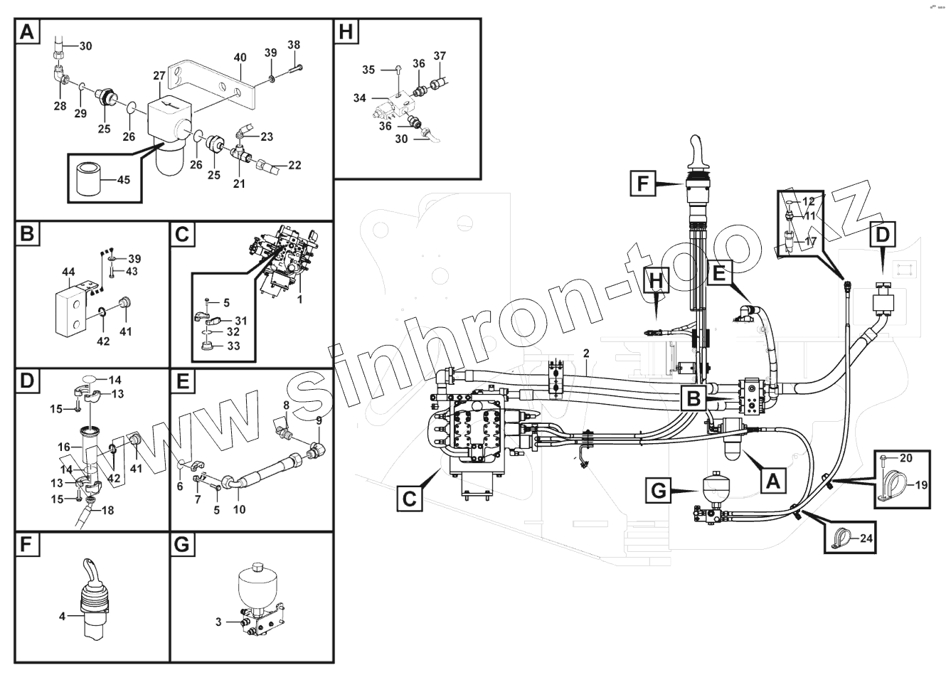 Каталог запасных частей к технике: SDLG L958F. Hydraulic control system