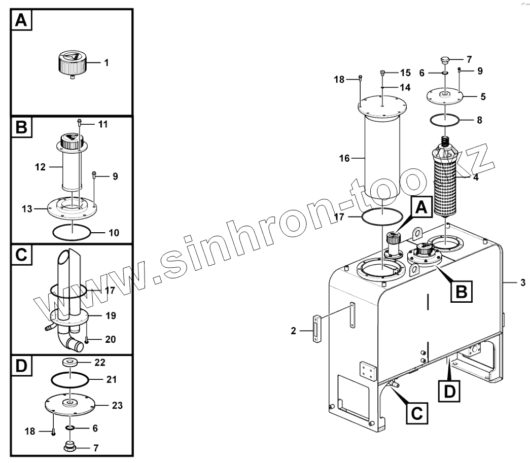 Каталог запасных частей к технике: SDLG L958F. Hydraulic fluid tank