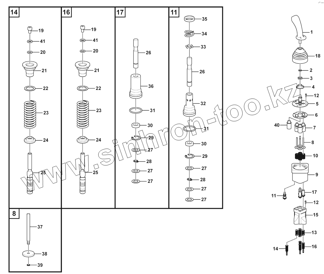 Каталог запасных частей к технике: SDLG L958F. PCL403-35-B (370142) Control lever assembly