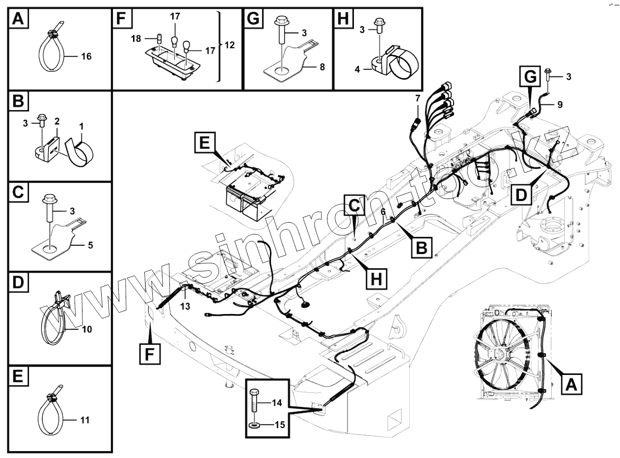 Каталог запасных частей к технике: SDLG L958F. Rear frame electric assembly