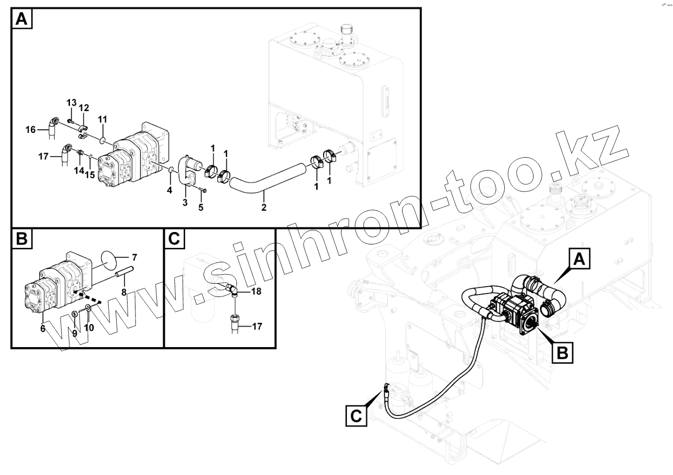 Каталог запасных частей к технике: SDLG L958F. Working hydraulic pump assembly