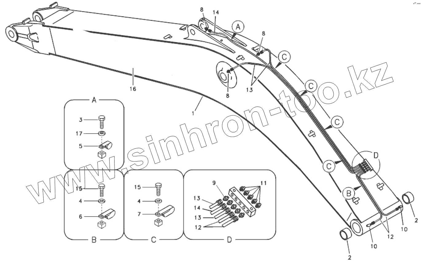 Каталог запасных частей к технике: SDLG LG6150E. 11213370 Boom and grease piping
