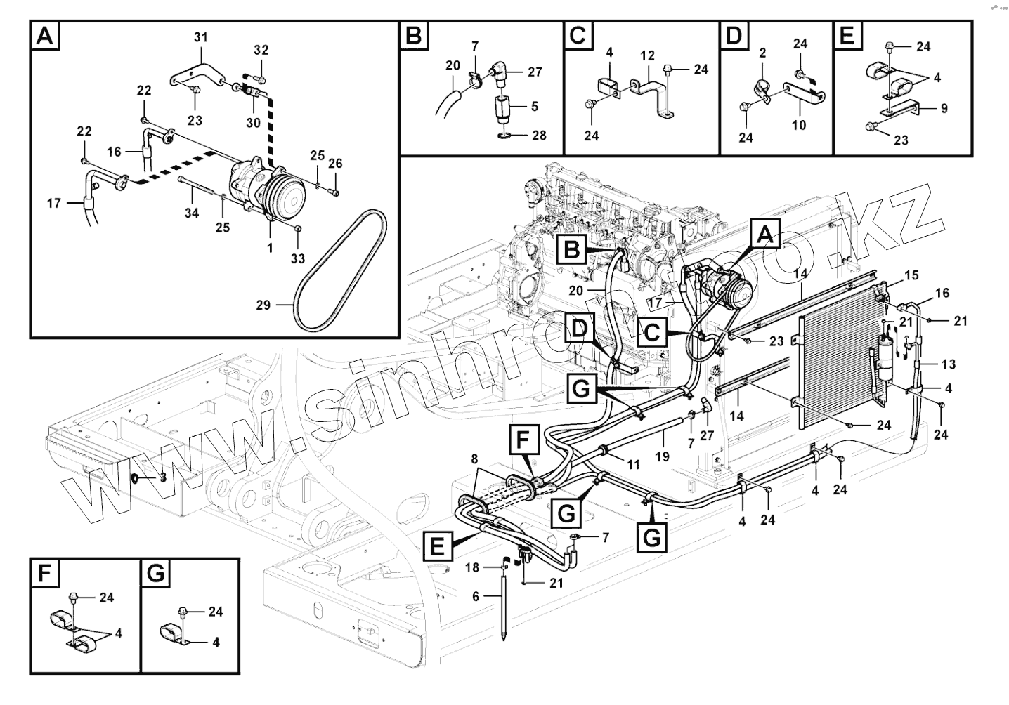 Каталог запасных частей к технике: SDLG LG6210E. Air conditioning, cooler and heater tubing