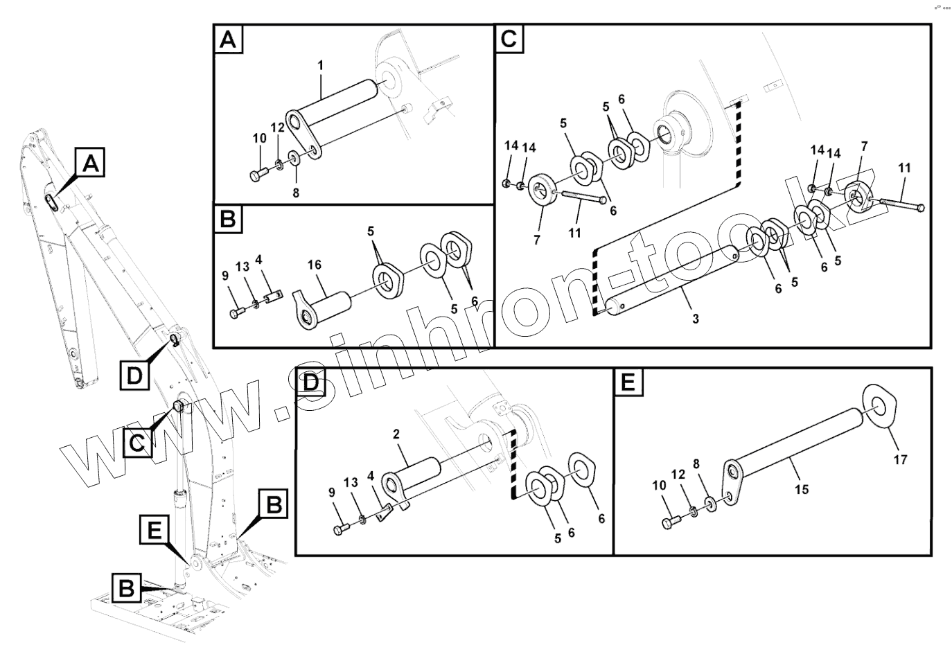 Каталог запасных частей к технике: SDLG LG6210E. Articulations with the boom