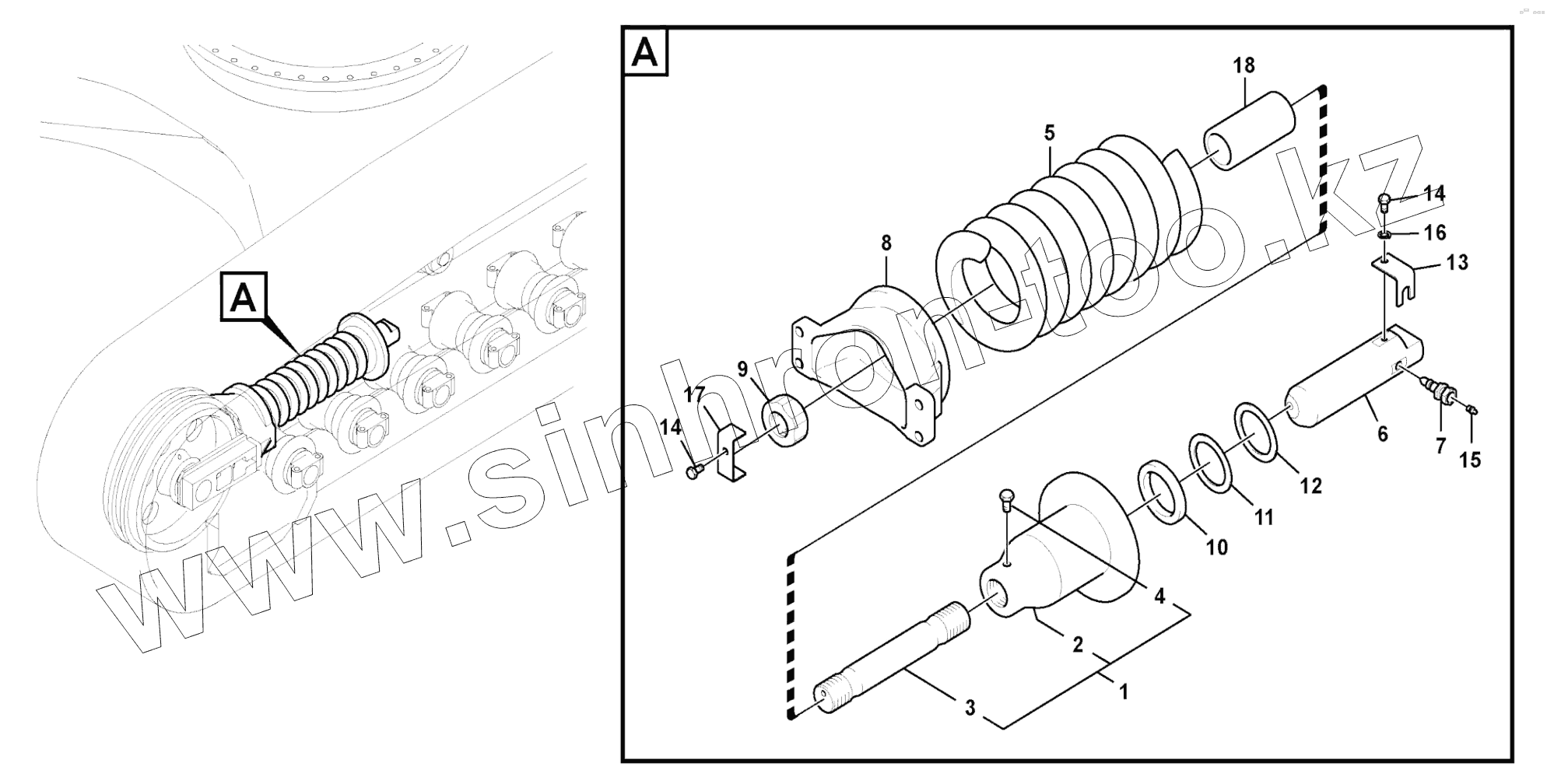 Каталог запасных частей к технике: SDLG LG6210E. Bottom carriage, spring pack