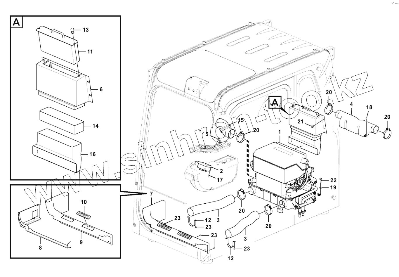 Каталог запасных частей к технике: SDLG LG6210E. Cabin air duct and cabin floor