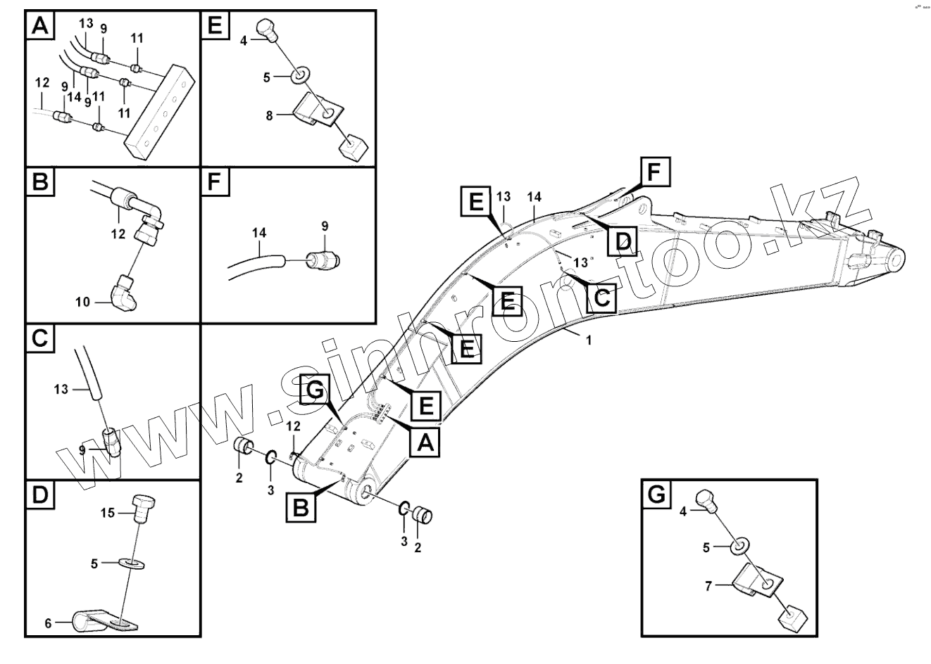 Каталог запасных частей к технике: SDLG LG6210E. Lance and lubrication tubing